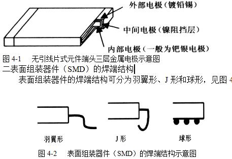 無引線片式元件焊接端頭電極一 般為三層金屬電極,見圖4-1